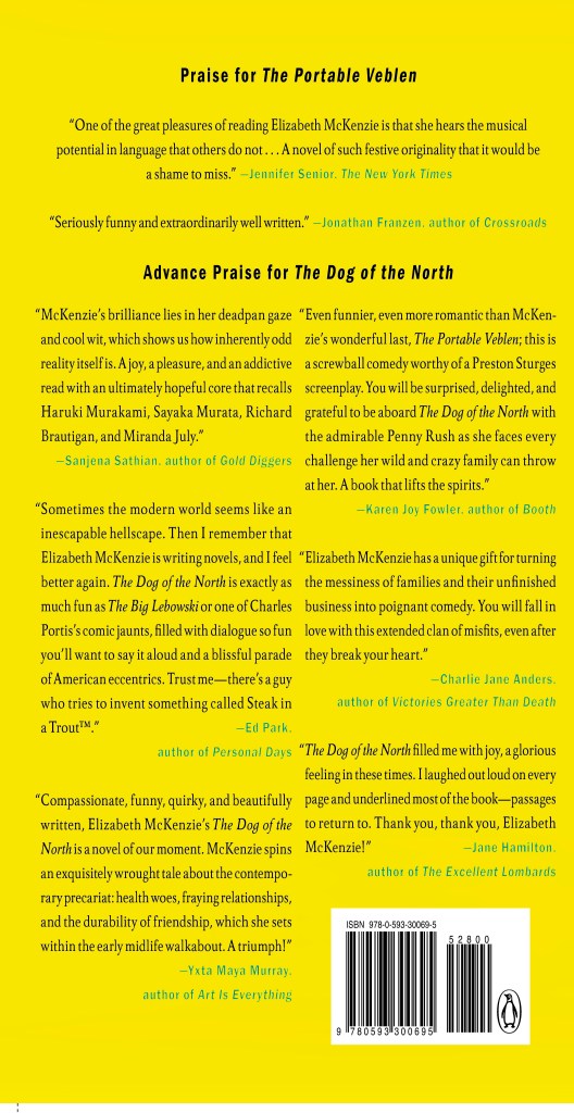 Elizabeth McKenzie’s latest novel is The Dog of the North, published by Penguin Press and 4th Estate/UK